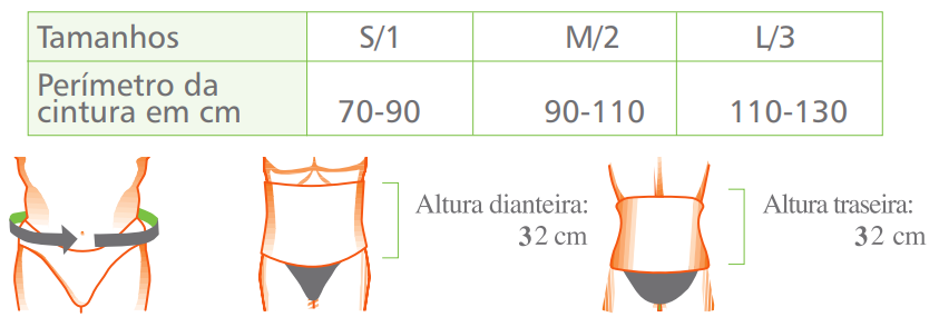 Contenção de pequenas e médias esventrações. Faixa de contenção pós-cirurgico e pós-parto.