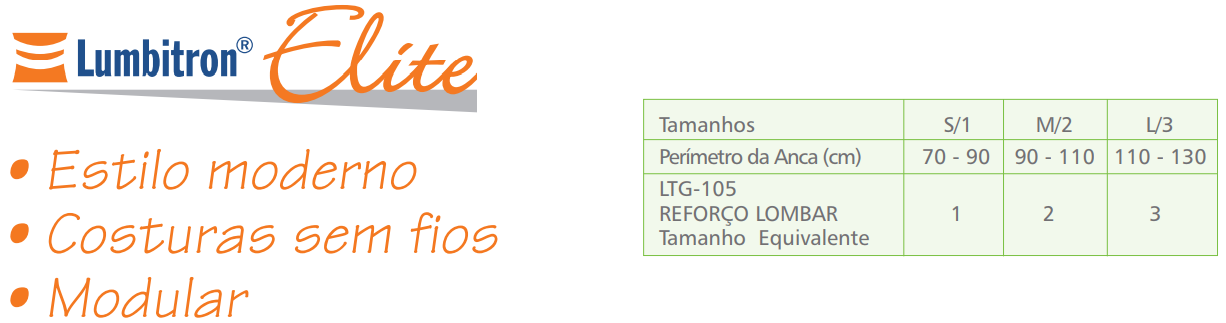 Sustentação sacrolombar, perfeita adaptação anatómica, tacto macio quando em contacto com a pele.