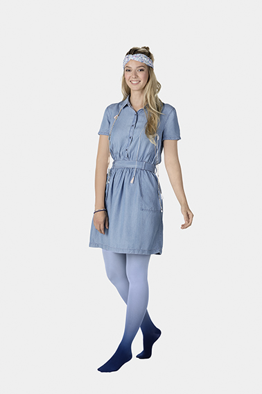A malha fina e brilhante faz das meias de compressão Juzo Inspiration um verdadeiro marcador de tendências, disponível com uma técnica especial de coloração por imersão – Dip Dye. As cores Papoila e Mirtilo, segundo esta técnica de coloração, são aplicadas como uma pintura, seguindo um percurso que vai aclarando de baixo para cima e que dá um efeito espetacular nas suas pernas. Além da coloração Dip Dye, Juzo Inspiration está disponível numa ampla variedade de cores: quer sejam as cores standard, as Trend Colours (Trend Colours), a Batik Collection, ou o padrão Vision – não há limites para a inspiração. Estes looks coloridos também estão disponíveis para o período da gravidez, já que os collants Juzo Inspiration estão disponíveis com uma parte especialmente elástica na região abdominal.