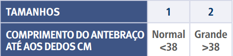 costas e se fecham com velcro no ante-braço. Dispõe de uma faixa larga adicional imobilizadora para